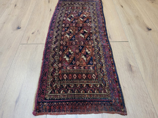 Belutsch Teppich antik geometrisch fein 126×40 cm