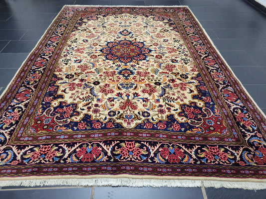 Täbriz Teppich 250x170 cm feine Korkwolle mit Seide Medaillonmuster
