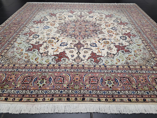 Täbriz Teppich Korkwolle Seide Medaillon feine Knüpfung 250x250 cm