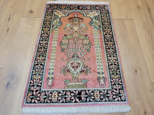 Ghom Seidenteppich 90x62 cm Kaschmir Seide feine Knüpfkunst
