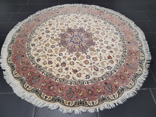 Täbriz Teppich Rund 200 cm Korkwolle mit Seide feine Knüpfkunst