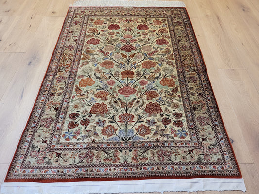 Ghom Seidenteppich 194x130 cm Seide auf Seide feine Knüpfkunst
