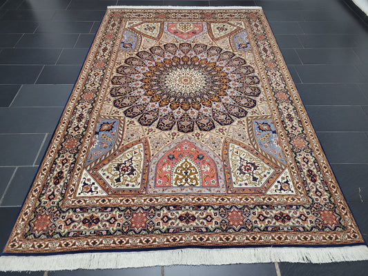 Täbriz Teppich 310x205 cm Korkwolle mit Seidenanteil feine Ghombad Knüpfung