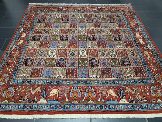 Täbriz Felder Teppich 255x255 cm Korkwolle mit Seidenanteil feine Knüpfung