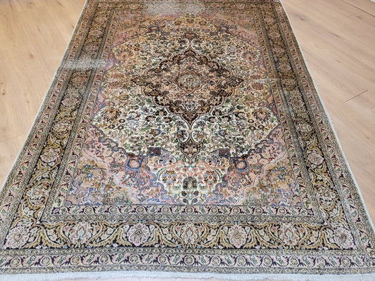 Täbriz Teppich Korkwolle Seide auf Seide Medaillon feine Knüpfung