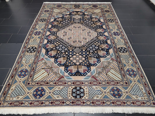 Nain Teppich Wolle mit Seide feine Knüpfung geometrisches Medaillon 310 × 200 cm