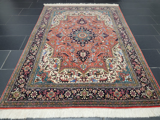 Täbriz Teppich Korkwolle und Seide feine Knüpfung florales Medaillon