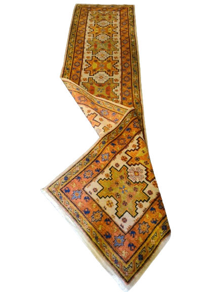 Antiker Handgeknüpfter Kasak Orientteppich Läufer aus China 304x73cm