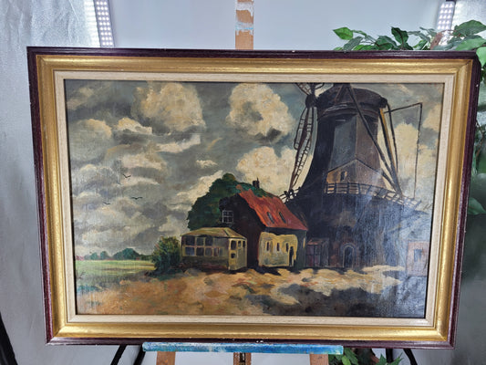 Holländische Schule (XIX) Ölgemälde Die alte Mühle 70x100cm