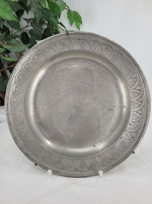 Großer Antiker Zinn Wandteller, Platzteller Massives Zinn