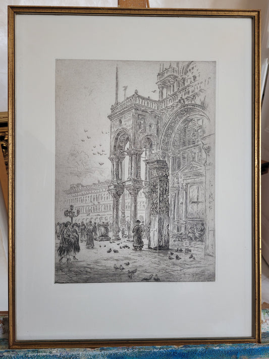 Original Lithographie, Rathaus mit belebtem Marktplatz 55x40cm