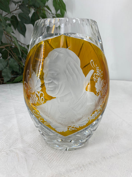 Portraitierte Handgeschliffene Kristallvase Höhe 27cm