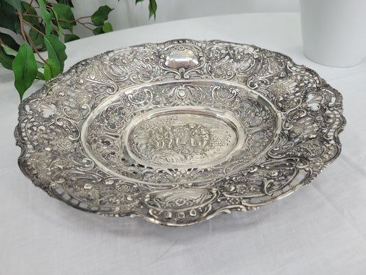 Silberschale 800er Silber mit Puttenengeln Relief und Durchbruchrand