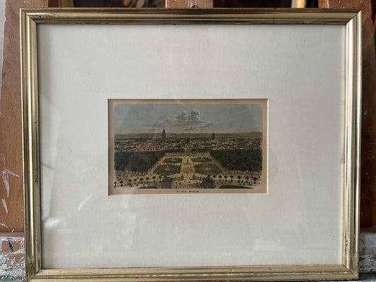 Antiker Holzstich um 1856, Stadtansicht Baden-Württemberg Karlsruhe 9x14cm