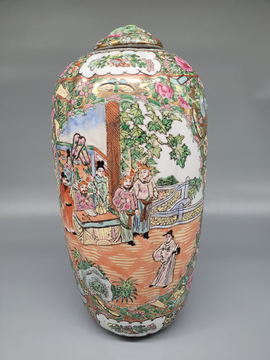 Antike China Deckelvase Vase Handbemalt 1900 JH