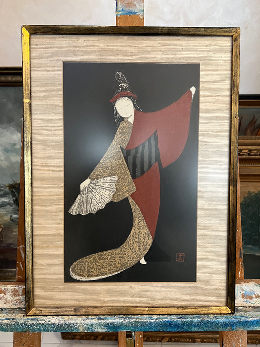 Lukisan Kaoru Kawano (1962) Grafik Dancing Figure mit Fächer 47x37cm