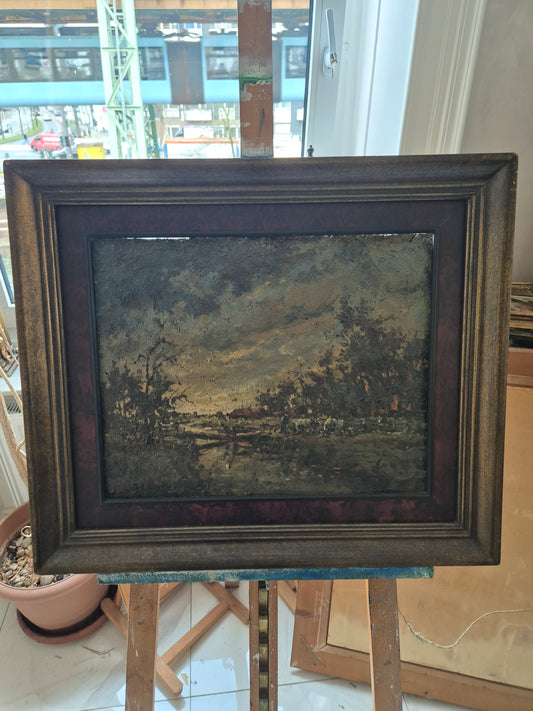 Ölgemälde Impressionismus Landschaft bei Abenddämmerung Handsigniert
