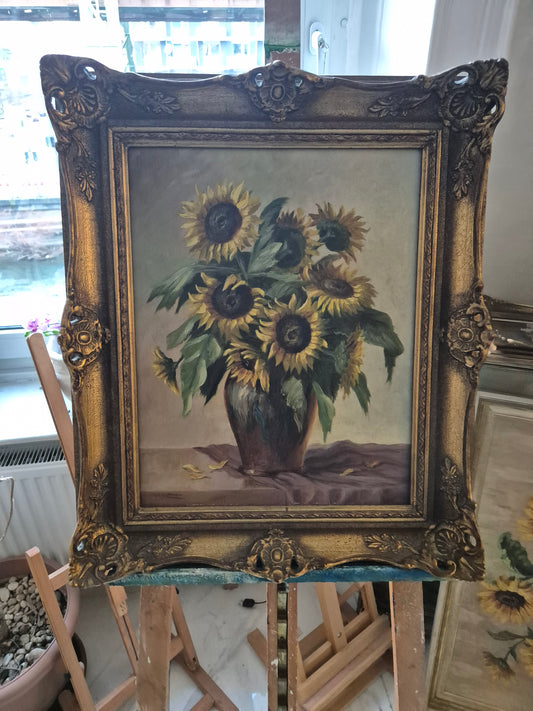 Ölgemälde Stillleben Sonnenblumen Handsigniert und Gerahmt 60x55cm