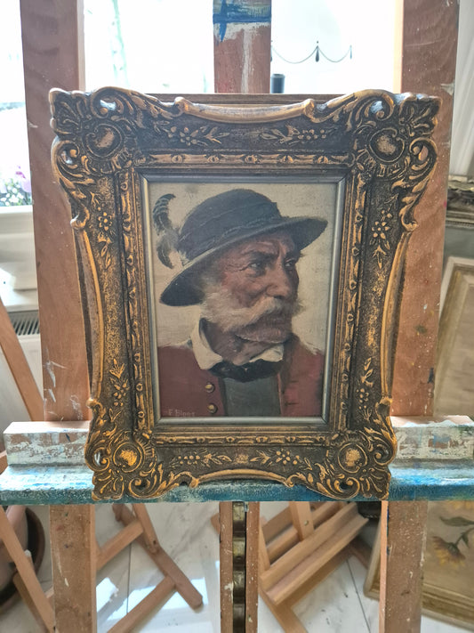 Ölgemälde F Bloos (XX) Porträt eines alten Mannes mit Hut