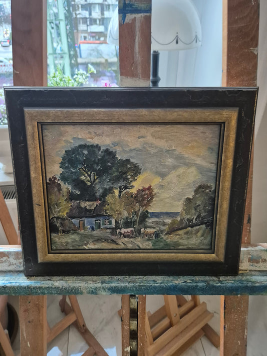 Ölgemälde Impressionismus Handsigniert Küstenlandschaft mit Bauernhof