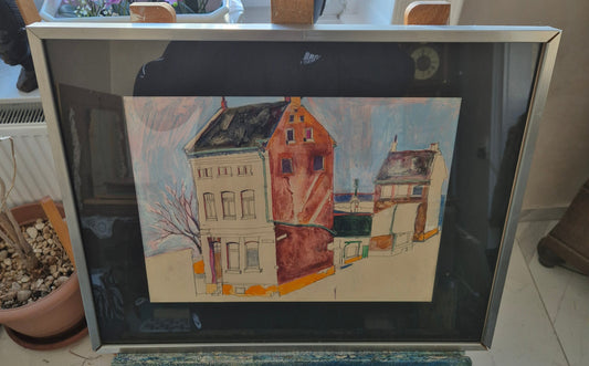 Cartoon Naive Malerei Mischtechnik Stadtbilder Gerahmt hinter Glas