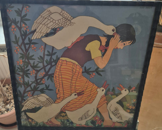 Ilse Breit (1908-1992) Farblithographie Goose Girl Gerahmt hinter Glas