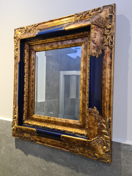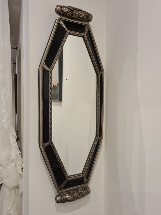 Jugendstil Spiegel mit schwarz vergoldeten Holzrahmen 45x40cm