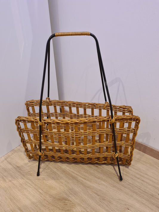 Zeitschriftenständer filigranem Rattan Stahl Mid Century 52x42cm