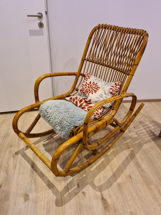 Mid Century Schaukelstuhl Rattan Bambus Holz Sessel Easychair 105cm