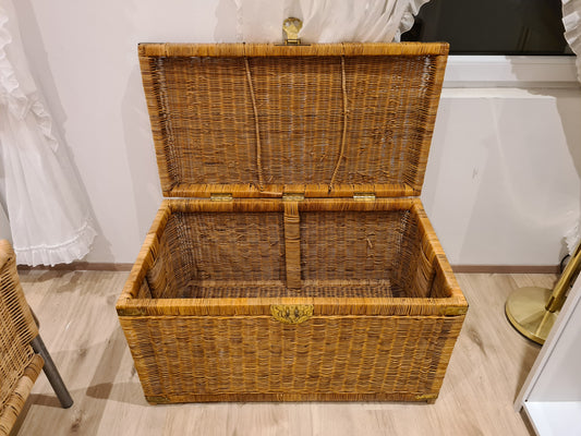 Vintage Truhe Kiste Korbtruhe Rattan Papierkordel Messing 90cm