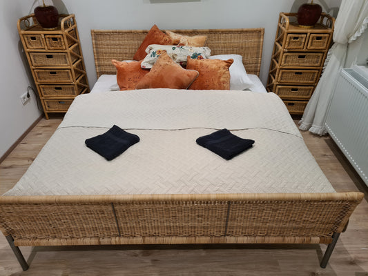 Doppelbett Rattan Bett mit 2 Nachtschränken 2 Personen Bett 220cm