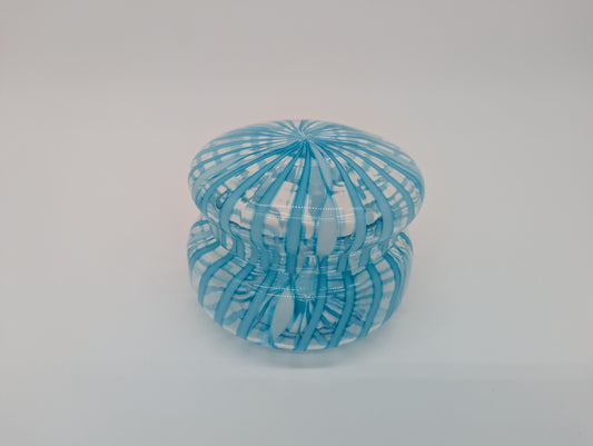 Glas Bonboniere Deckeldose in blau mit gestreiftem Design Süßigkeiten Dose