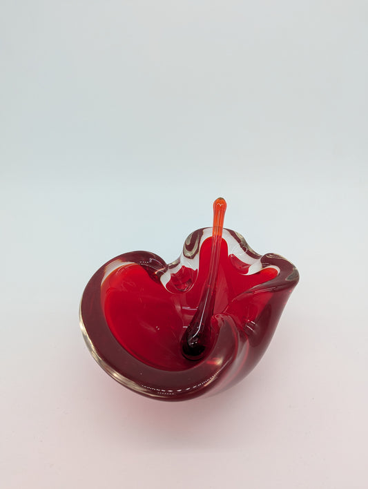 Murano Stil Glasschale Aschenbecher mit Glasstab mundgeblasen in Rot Vintage