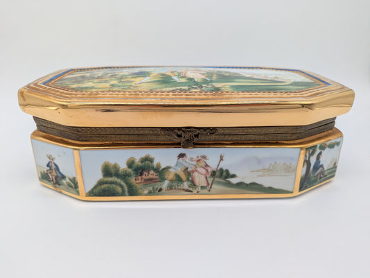 Porzellanschatulle Schmuckschatulle Handbemalt mit Landschaftsszenen vergoldet
