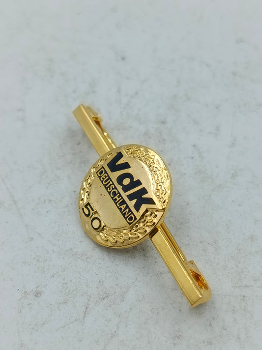 Klassische Krawattennadel Brosche VdK Deutschland Jubiläum 50 Jahre in Goldoptik