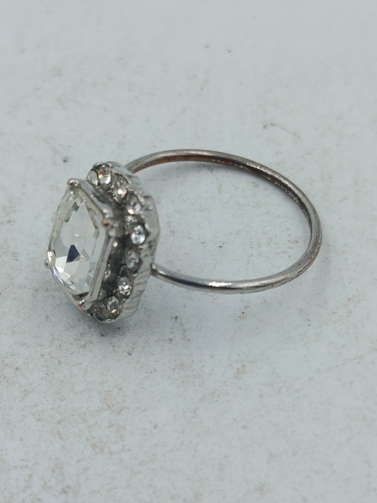 Eleganter Ring in Silberoptik mit klarem Mittelstein und funkelndem Steinbesatz