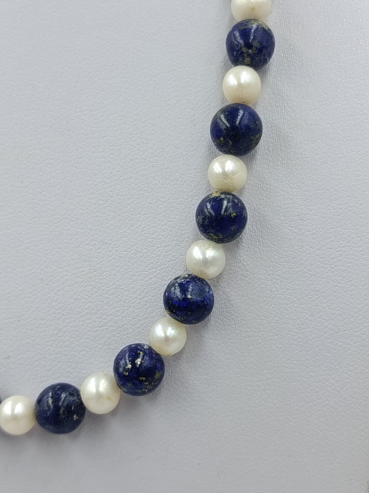 Klassische Halskette aus Lapislazuli mit runden Perlen und kräftiger blauer Farbwirkung