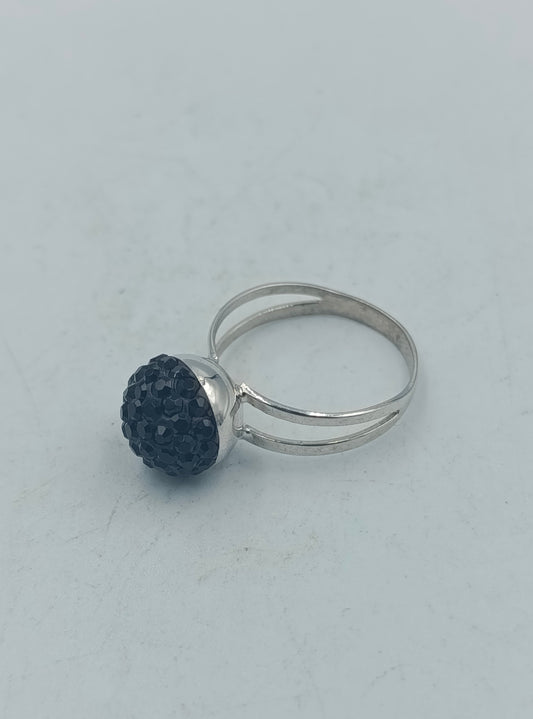 925 Silber Ring mit schwarzer Kristallkugel Größe 53