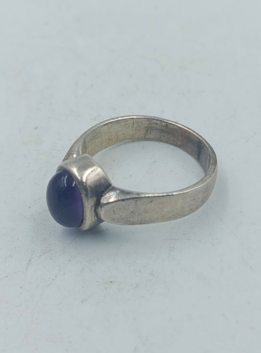 925er Silberring mit violettem Cabochonstein Zeitloses schlichtes Design