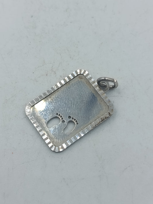 Silber Anhänger rechteckig mit Babyfuß Motiv 925