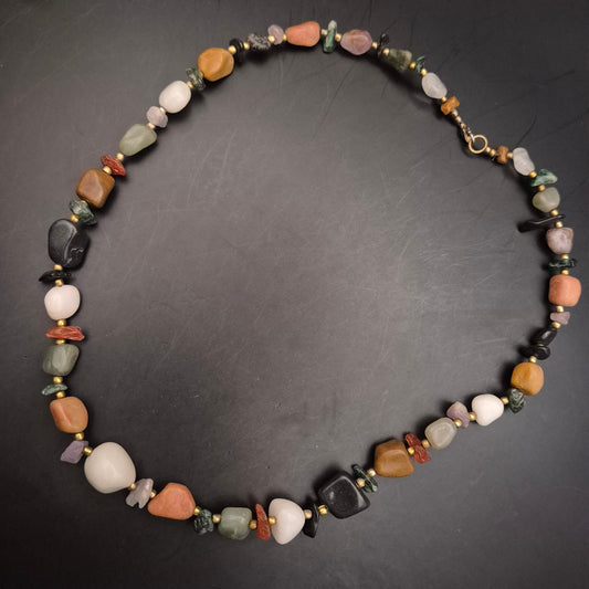 Kurze Halskette Damen – Bunter Mix aus Naturstein-Trommelsteinen