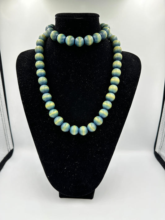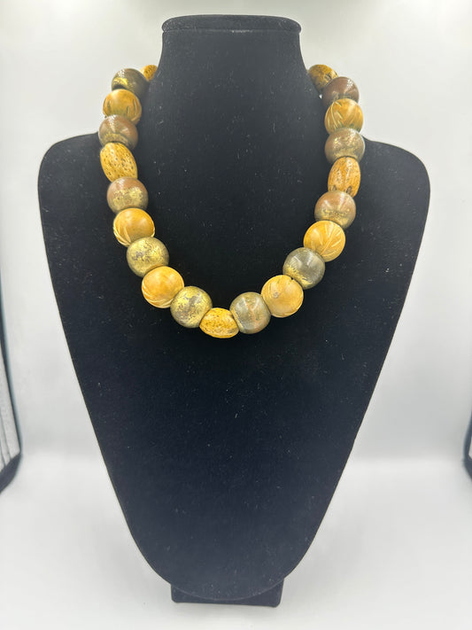 Gelb-Grüne Holzperlenkette mit goldfarbigen Schraubverschluss