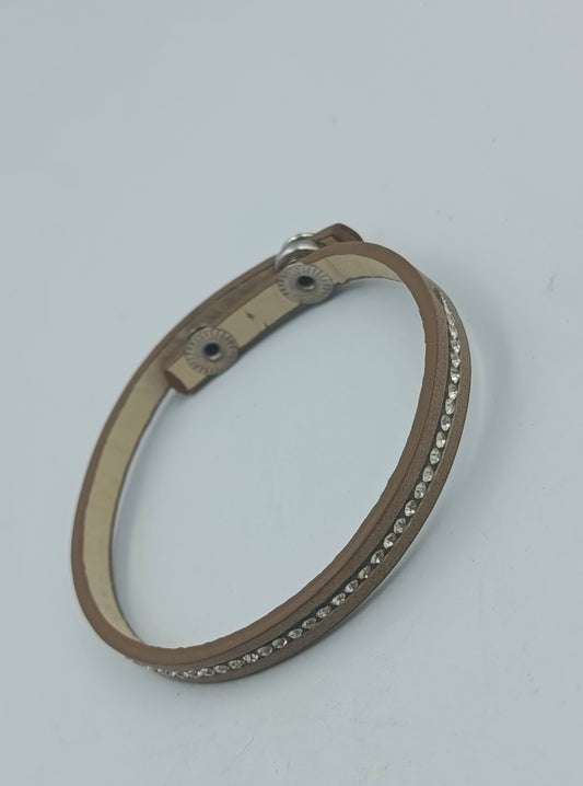 Beiges Lederarmband mit Strasssteinen und Druckknopfverschluss elegant und modern