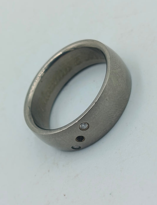 Titan Ring mit Gravur Claudia & Marko und Zirkonia Steinen Größe 58