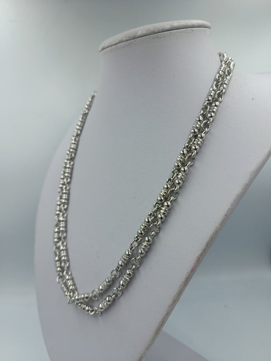 Lange rosa Kugelperlenkette mit marmorierter Struktur im eleganten Vintage Stil