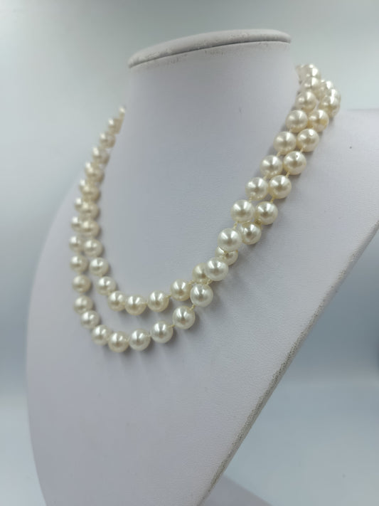 Doppelte Perlenkette Weiß Klassisch Elegant