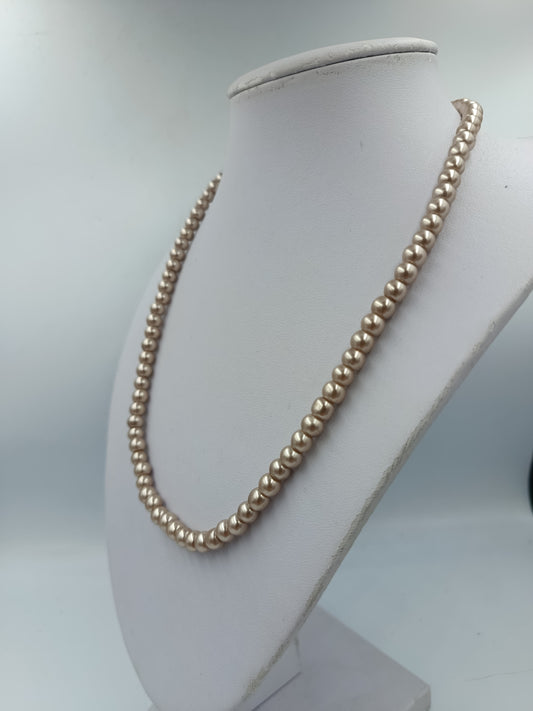 Perlenkette Champagner Beige mit Verlängerungskette