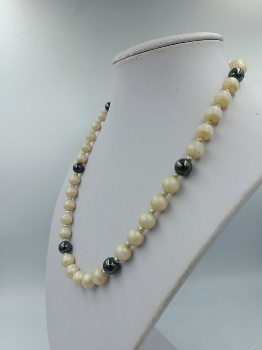 Perlenkette Creme Grau mit silberfarbenen Akzenten