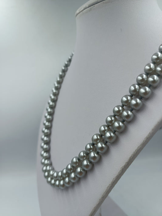 Doppelte Perlenkette Silberfarben Elegant