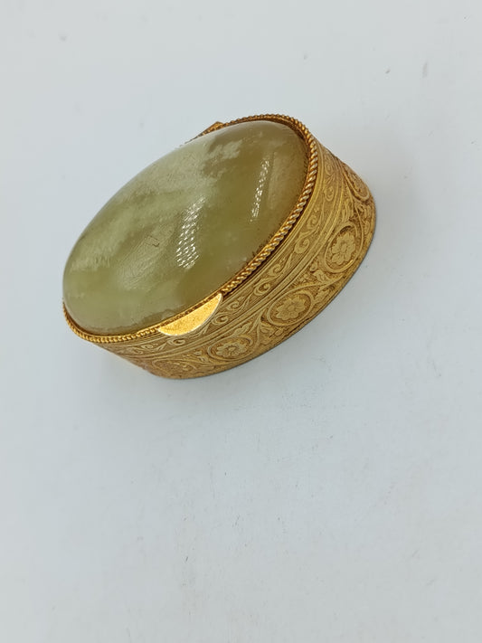 Vergoldete ovale Dose mit grünem Stein